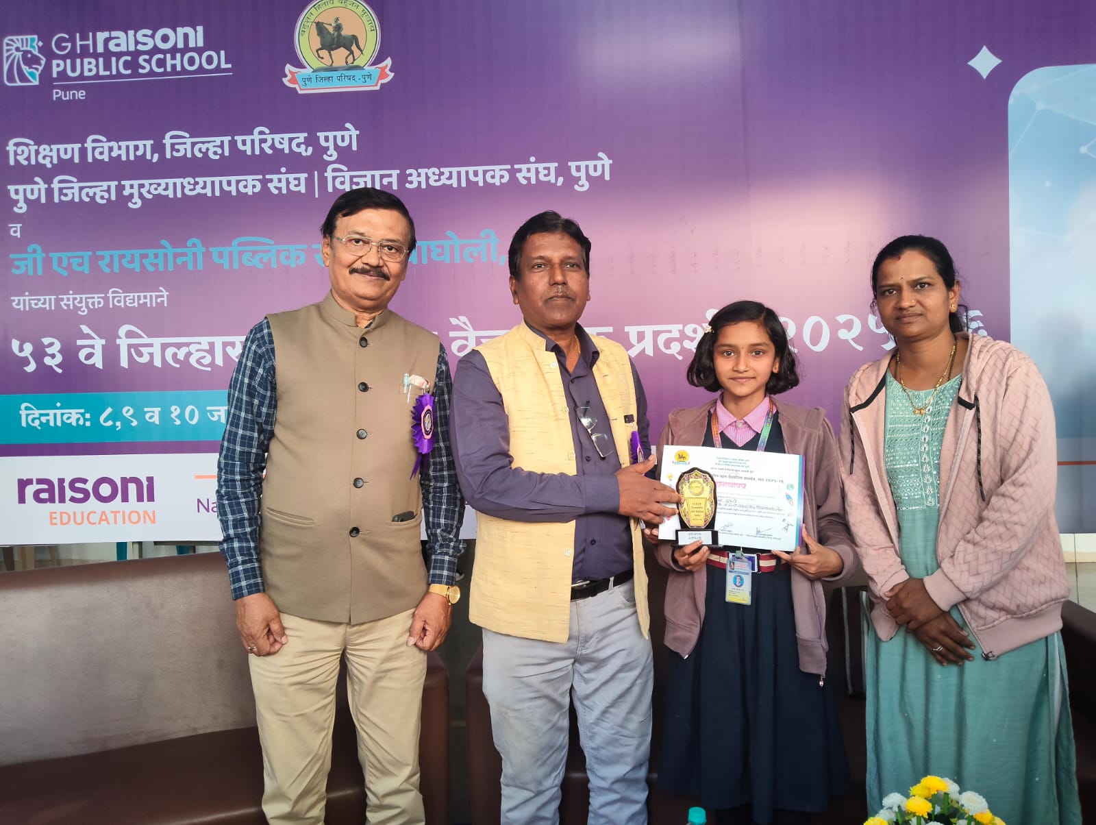 जिल्हा परिषद पुणे अंतर्गत शिक्षण विभाग, पुणे जिल्हा मुख्याध्यापक व विज्ञान संघ तसेच जी. एच. रायसोनी पब्लिक स्कूल, वाघोली यांच्या संयुक्त विद्यमाने आयोजित ५३ वे बालवैज्ञानिक विज्ञान प्रदर्शन वाघोली (पुणे) येथे उत्साहात पार पडले. या तीन दिवसीय विज्ञान प्रदर्शनात तालुका स्तरावर प्रथम क्रमांक पटकावलेल्या पिंपरखेड (ता. शिरूर) येथील श्रीदत्त विद्यालयाची इयत्ता सहावीतील विद्यार्थिनी स्वराली नवनाथ दाभाडे हिने जिल्हास्तरीय स्पर्धेत तृतीय क्रमांक मिळवत विद्यालयाच्या शिरपेचात मानाचा तुरा रोवला आहे.